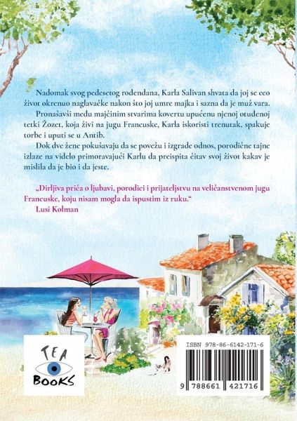 Nikada nije prekasno da se ivi svoj san... Nadomak svog pedesetog röendana, Karla Salivan shvata da joj se ceo ivot okrenuo naglaväke nakon to joj umre majka i sazna da je mu vara. Pronaavi me¿u maj¿inim stvarima kovertu upüenu njenoj otüenoj tetki ozet, koja ivi na jugu Francuske, Karla iskoristi trenutak, spakuje torbe i uputi se u Antib. Dok dve ene pokuavaju da se poveu i izgrade odnos, porodi¿ne tajne izlaze na videlo primoravajüi Karlu da preispita ¿itav svoj ivot kakav je mislila da je bio i da jeste. "Dirljiva pri¿a o ljubavi, porodici i prijateljstvu na veli¿anstvenom jugu Francuske, koju nisam mogla da ispustim iz ruku." Lusi Kolman
