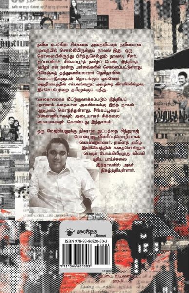 This is a modern Tamil novel, portraying the problems of modern Tamil life. Starting with a murder, the narrative continues on four different threads, following the perspectives of: Chinese person, a Japanese person, an Indian Tamilian and a Singapore Tamil woman. Every chapter starts with a quote from French writer Derrida and the narrative of the chapters investigates them. In a storytelling style that is new to Tamil literature, the author gives a new life to the Indian mythological story of Agaligai. Singapore and identity dysphoria are at the heart of this refreshing novel. Sidhuraj Ponraj's writing style reminds one of a magician's performance.