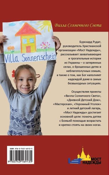 Burkhard Rudat, der Leiter des Hüttenberger Hilfswerkes "Brücke der Hoffnung e. V.", erzählt packende, einfühlsame Begebenheiten aus der Ukraine. Es sind Erlebnisse, die zu Herzen gehen, von "Vergessenen Dörfern", alleingelassenen Kindern und einem Land am Rande des Zusammenbruchs. Es sind aber auch Geschichten darüber, wie Gott immer wieder mit seiner Hoffnung in das Leben von Menschen hineinstrahlt, durch "Zufluchtsorte" für Kinder aus gestörten Familien, durch Hilfsgüter, durch Hilfe zur Selbsthilfe. Tauchen Sie in eine Welt ein, die nicht weit von Deutschland entfernt ist, aber oft so fremd erscheint. Seit über 20 Jahren arbeitet das Hilfswerk in einem der ärmsten Gebiete der Ukraine, in einem Land, das immer wieder in den Schlagzeilen zu finden ist. In dieser Situation ist nun das spannende Buch über "Brücke der Hoffnung" auf Russisch bei BoD erschienen.