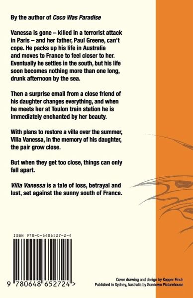 Vanessa is gone - killed in a terrorist attack in Paris - and her father, Paul Greene, can't cope. He packs up his life in Australia and moves to France to feel closer to her. Eventually he settles in the south, but his life soon becomes nothing more than one long, drunk afternoon by the sea. Then a surprise email from a close friend of his daughter's changes everything, and when he meets her at Toulon Train Station he is immediately enchanted by her beauty. With plans to restore a villa over the summer, Villa Vanessa, in the memory of his daughter, the pair grow close. But when they get too close, things can only fall apart. Villa Vanessa is a tale of loss, betrayal and lust set against the sunny south of France.