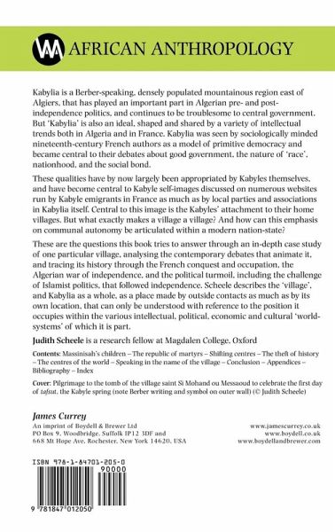 Kabylia is a Berber-speaking, densely populated mountainous region east of Algiers, that has played an important part in Algerian pre- and post-independence politics, and continues to be troublesome to central government. But 'Kabylia' is also an ideal, shaped and shared by a variety of intellectual trends both in Algeria and in France. Kabylia was seen by sociologically minded nineteenth-century French authors as a model of primitive democracy and became central to their debates about good government, the nature of 'race', nationhood, and the social bond. These qualities have by now largely been appropriated by Kabyles themselves, and have become central to Kabyle self-images discussed on numerous websites run by Kabyle emigrants in France as much as by local parties and associations in Kabylia itself. Central to this image is the Kabyles' attachment to their home villages. But what exactly makes a village a village? And how can this emphasis on communal autonomy be articulated within a modern nation-state? These are the questions this book tries to answer through an in-depth case study of one particular village, analysing the contemporary debates that animate it, and tracing its history through the French conquest and occupation, the Algerian war of independence, and the political turmoil, including the challenge of Islamist politics, that followed independence. The 'village', as much as Kabylia as a whole, emerges as a place made by its internal contradictions, and that can only be understood with reference to the position it occupies within the various intellectual, political, economic and cultural 'world-systems' of which it is part. JUDITH SCHEELE is a Research Fellow at Magdalen College, Oxford