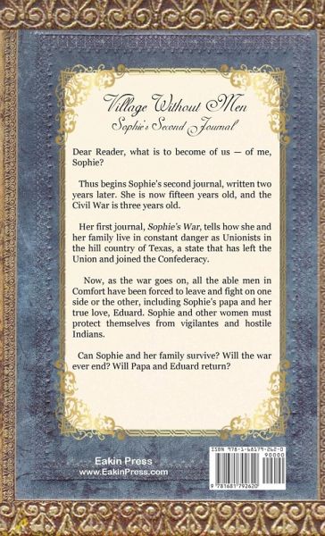 Dear Reader, what is to become of us - of me, Sophie? Thus begins Sophie's second journal, written two years later. She is now fifteen years old, and the Civil War is three years old. Her first journal, Sophie's War, tells how she and her family live in constant danger as Unionists in the hill country of Texas, a state that has left the Union and joined the Confederacy. Now, as the war goes on, all the able men in Comfort have been forced to leave and fight on one side or the other, including Sophie's papa and her true love, Eduard. Sophie and other women must protect themselves from vigilantes and hostile Indians. Can Sophie and her family survive? Will the war ever end? Will Papa and Eduard return?