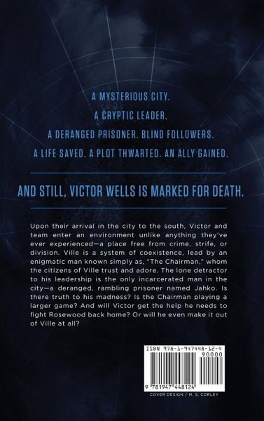 A mysterious city A cryptic leader A deranged prisoner. Blind followers. A life saved. A plot thwarted. An ally gained. And still, Victor Wells is marked for death. Upon their arrival in the city to the south, Victor and team enter an environment unlike anything they've ever experienced-a place free from crime, strife, or division. Ville is a system of coexistence, lead by an enigmatic man known simply as "The Chairman," whom the citizens of Ville trust and adore. The lone detractor to his leadership is the only incarcerated man in the city-a deranged, rambling, prisoner named Jahko. Is there truth to his madness? Is the Chairman playing a larger game? And will Victor get the help he needs to fight Rosewood back home? Or will he even make it out of Ville at all?
