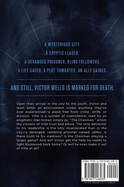 A mysterious city A cryptic leader A deranged prisoner. Blind followers. A life saved. A plot thwarted. An ally gained. And still, Victor Wells is marked for death. Upon their arrival in the city to the south, Victor and team enter an environment unlike anything they've ever experienced-a place free from crime, strife, or division. Ville is a system of coexistence, lead by an enigmatic man known simply as "The Chairman," whom the citizens of Ville trust and adore. The lone detractor to his leadership is the only incarcerated man in the city-a deranged, rambling, prisoner named Jahko. Is there truth to his madness? Is the Chairman playing a larger game? And will Victor get the help he needs to fight Rosewood back home? Or will he even make it out of Ville at all?