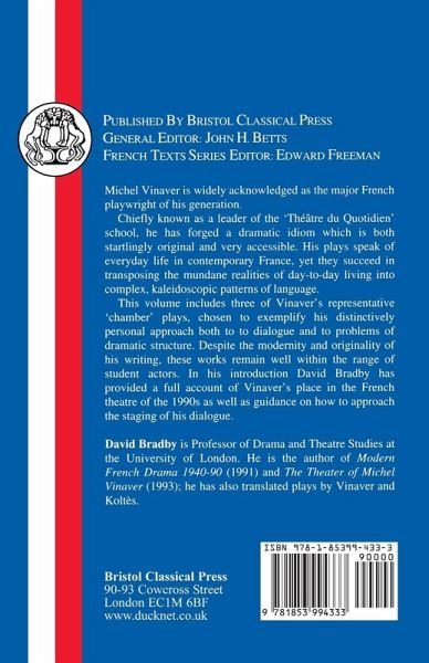 This is a title in the Bristol Classical Press French Texts series, in French with English notes, vocabulary and introduction. Chiefly known as leader of the "Theatre du Quotidien" school, Vinaver has forged a dramatic idiom which is both original and accessible. This volume includes three of his representative "chamber" plays, chosen to exemplify his personal approach both to dialogue and problems of dramatic structure. The introduction provides an account of Vinaver's place in the French theatre of the 1990s, as well as guidance on how to approach the staging of his dialogue.