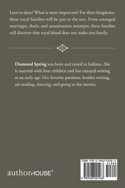 Diamond Spring was born and raised in Indiana. She is married with five children and has enjoyed writing at an early age. Her favorite pastimes, besides writing, are reading, dancing, and going to the movies.