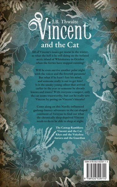 On the Arctic island of Whitskersey, the harsh winter cold and seemingly endless polar night wreak havoc on Vincent's health. With no more ferries running for the year, there's no escaping the eerie voices and feverish paranoia. As things take a turn from bad to worse, is Vincent just delusional, or is there really someone out to get him? Can his trusty feline companion save the day by peeing on his biscuits? Venture to the cat-shaped continent of Furuyan in this Nordic-infused gaslamp fantasy adventure to find out what Vincent needs to do to sleep at night. This creepy cosy first installment of The Catnap Ramblers trilogy is described as similar in style to Terry Pratchett's novels. It has been recommended to readers who've enjoyed Morgan Stang's The Bookshop and the Barbarian, Rebecca Thorne's Can't Spell Treason without Tea, and Delemhach's The House Witch.