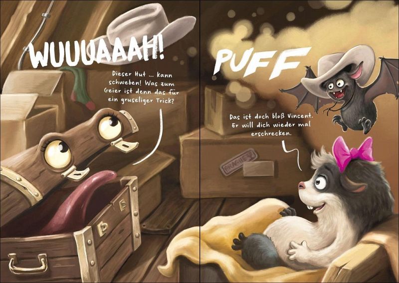 Eigentlich sind Vincent und Fritzi im Zoo auf der Suche nach neuen Freunden: Mit deren Hilfe wollen sie die fiese Katze vom Dachboden verjagen. Doch dann werden die beiden durch ein geheimes Portal in die Geisterwelt katapultiert! Wow, ist das aufregend und ... ziemlich heiß: Vincent und Fritzi sind mitten in Afrika gelandet! Das kann ja heiter werden. Zumal sie es gleich mit der ziemlich gruseligen Hyänen-Polizei zu tun bekommen. Randvoll mit Spannung, Witz und Abenteuer - verpackt in kurze Texte und mit vielen seitenfüllenden Illustrationen. Ein Muss - nicht nur für Grusel-Fans!