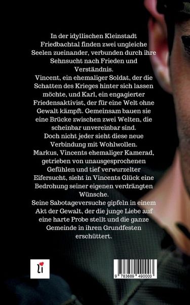 In der idyllischen Kleinstadt Friedbachtal finden zwei ungleiche Seelen zueinander, verbunden durch ihre Sehnsucht nach Frieden und Verständnis. Vincent, ein ehemaliger Soldat, der die Schatten des Krieges hinter sich lassen möchte, und Karl, ein engagierter Friedensaktivist, der für eine Welt ohne Gewalt kämpft. Gemeinsam bauen sie eine Brücke zwischen zwei Welten, die scheinbar unvereinbar sind. Doch nicht jeder sieht diese neue Verbindung mit Wohlwollen. Markus, Vincents ehemaliger Kamerad, getrieben von unausgesprochenen Gefühlen und tief verwurzelter Eifersucht, sieht in Vincents Glück eine Bedrohung seiner eigenen verdrängten Wünsche. Seine Sabotageversuche gipfeln in einem Akt der Gewalt, der die junge Liebe auf eine harte Probe stellt und die ganze Gemeinde in ihren Grundfesten erschüttert.