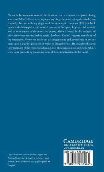 Norma is by common consent the finest of the ten operas composed during Vincenzo Bellini's short career, representing his genius more comprehensively than is usually the case with any single work by an operatic composer. This 1998 handbook provides the biographical and cultural context of the opera. It gives a full synopsis and an examination of the music and poetry, which is rooted in the aesthetics of early nineteenth-century Italian opera. Professor Kimbell suggests something of the impression Norma has made on our imaginations and sensibilities in the 165 years since it was first produced in Milan in December 1831. He considers the great interpretations of the eponymous leading role. His discussion also embraces Bellini's work more generally by presenting some of the critical reactions to his music.