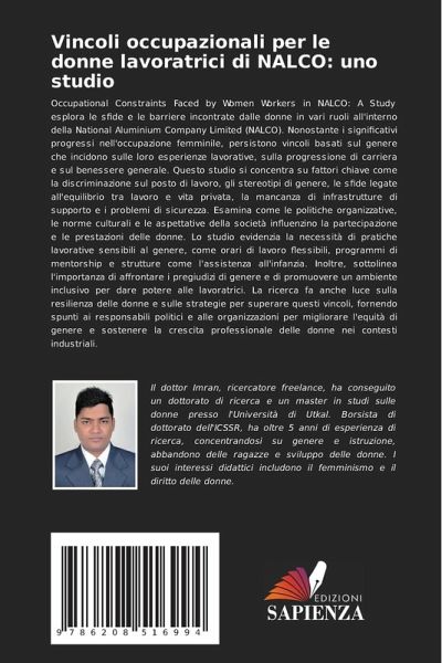 Occupational Constraints Faced by Women Workers in NALCO: A Study esplora le sfide e le barriere incontrate dalle donne in vari ruoli all'interno della National Aluminium Company Limited (NALCO). Nonostante i significativi progressi nell'occupazione femminile, persistono vincoli basati sul genere che incidono sulle loro esperienze lavorative, sulla progressione di carriera e sul benessere generale. Questo studio si concentra su fattori chiave come la discriminazione sul posto di lavoro, gli stereotipi di genere, le sfide legate all'equilibrio tra lavoro e vita privata, la mancanza di infrastrutture di supporto e i problemi di sicurezza. Esamina come le politiche organizzative, le norme culturali e le aspettative della società influenzino la partecipazione e le prestazioni delle donne. Lo studio evidenzia la necessità di pratiche lavorative sensibili al genere, come orari di lavoro flessibili, programmi di mentorship e strutture come l'assistenza all'infanzia. Inoltre, sottolinea l'importanza di affrontare i pregiudizi di genere e di promuovere un ambiente inclusivo per dare potere alle lavoratrici. La ricerca fa anche luce sulla resilienza delle donne e sulle strategie per superare questi vincoli, fornendo spunti ai responsabili politici e alle organizzazioni per migliorare l'equità di genere e sostenere la crescita professionale delle donne nei contesti industriali.