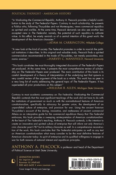 Acknowledgments Introduction: The Need to Vindicate the American Commercial Republic Chapter 1: The Foundations in Principle of The Federalist's Constitutionalism Chapter 2: Natural Rights and A New Commercial Republican Theory Chapter 3: The Spirited Nature of Commercial Republics Chapter 4: Taming the Commercial Republic Chapter 5: Thucydides and The Federalist Chapter 6: The Virtue of Enterprise Chapter 7: Federalists 11-14 and the Spirit of Enterprise Chapter 8: Enterprise and the High Politics of American Constitutionalism Chapter 9: War and the Impossibility of An Insularity Doctrine Chapter 10: Constitutional Powers and The Federalist's High-Toned Politics Conclusion: The Commercial Republic and The American Way of War Bibliography About the Author