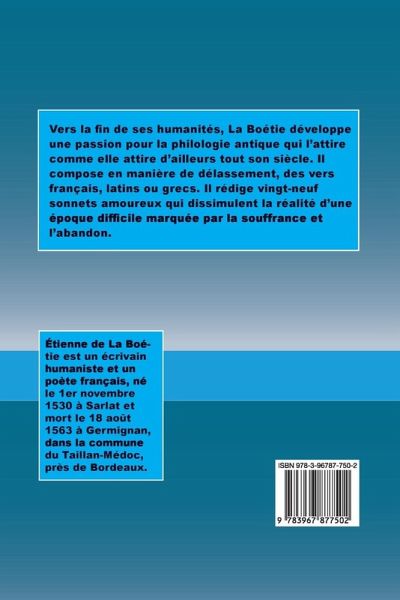 Vers la fin de ses humanités, La Boétie développe une passion pour la philologie antique qui l'attire comme elle attire d'ailleurs tout son siècle. Il compose en manière de délassement, des vers français, latins ou grecs. Il rédige vingt-neuf sonnets amoureux qui dissimulent la réalité d'une époque difficile marquée par la souffrance et l'abandon.