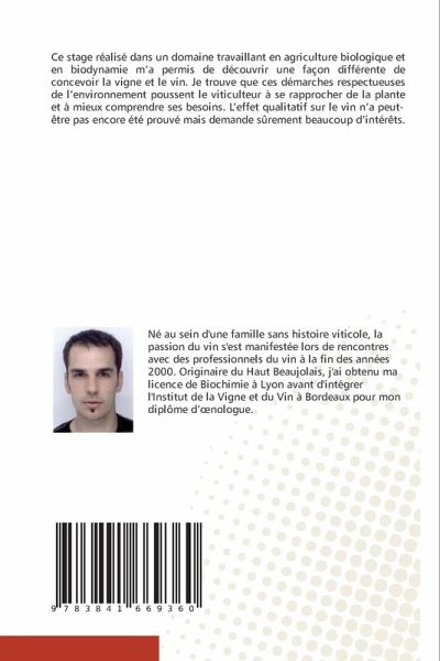 Ce stage réalisé dans un domaine travaillant en agriculture biologique et en biodynamie m'a permis de découvrir une façon différente de concevoir la vigne et le vin. Je trouve que ces démarches respectueuses de l'environnement poussent le viticulteur à se rapprocher de la plante et à mieux comprendre ses besoins. L'effet qualitatif sur le vin n'a peut-être pas encore été prouvé mais demande sûrement beaucoup d'intérêts.