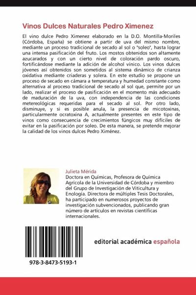 El vino dulce Pedro Ximenez elaborado en la D.O. Montilla-Moriles (Córdoba, España) se obtiene a partir de uva del mismo nombre, mediante un proceso tradicional de secado al sol o "soleo", hasta lograr una intensa pasificación del fruto. Los mostos obtenidos son altamente azucarados y con un cierto nivel de coloración pardo oscuro, fortificándose mediante la adición de alcohol vínico. Los vinos dulces jóvenes así obtenidos son sometidos al sistema dinámico de crianza oxidativa mediante criaderas y solera. En este estudio se propone un proceso de secado en cámara a temperatura y humedad constante como alternativa al proceso tradicional de secado al sol que, permite por un lado, realizar el proceso de pasificación en el momento más adecuado de maduración de la uva, con independencia de las condiciones metereológicas requeridas para el secado al sol. Por otro lado, disminuye, y si es posible anula, la presencia de micotoxinas, particularmente ocratoxina A, actualmente presentes en este tipo de vinos como consecuencia de crecimientos fúngicos muy difíciles de evitar en la pasificación por soleo. De esta manera, se pretende mejorar la calidad de los vinos dulces Pedro Ximénez.