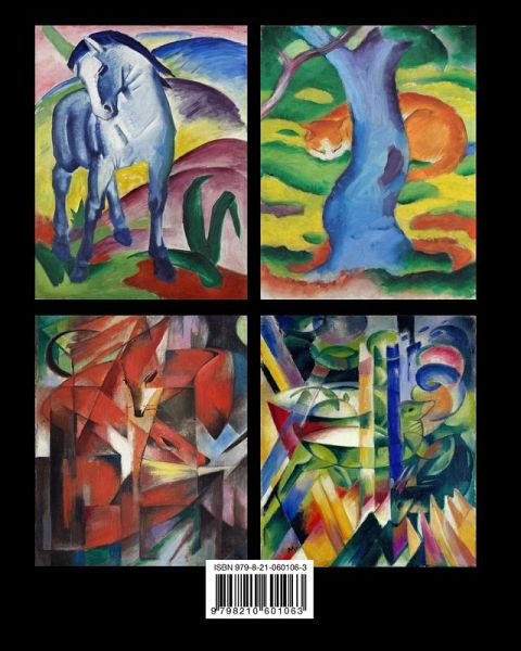 Vintage Art: Franz Marc: 20 Fine Art Prints is a curated collection of artwork by German painter and printmaker, Franz Mortiz Wilhelm Marc (1880-1916). Marc's contribution to German Expressionism was integral, he founded the Der Blaue Rieter journal in 1911. His work was shown at the first Der Blaue Rieter exhibition in Munich at the Thannhauser Galleries, which was the pinnacle of the German Expressionist Movement. He initially studied arts at Munich University, thereafter he visited Paris, where he copied the paintings he saw in museums until Marc developed a style that was truly his own. Marc used bright colours in his paintings and his main subject was depicting animals in natural settings. How to use the prints: The one-sided prints can be removed by using a box cutter or scissors, they are ideal for framing, home decor, and papercrafts.