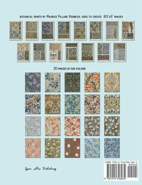 This beautiful "Vintage Botanical Papers" book is a collection of 20 vintage images that you can use as end paper, in scrapbooking, origami, cut-outs, junk journals and much more. Images are not seamless patterns, but they are seamless within the 8.5"x11" size. Repeat patterns are created to fit the US letter format. Some images are re-created using the original elements and all images are digitally enhanced in a way that preserves their original Art Nouveau character. Features include: US letter size-8.5"x11" which is big enough to use in multiple projects There are 20 different images Each image is printed on the front and the back of the page to make them all useable Most "imperfections" are preserved to ensure the image integrity Original colors are preserved and slightly enhanced Includes repeat patterns within 8.5"x11" size as well as horizontal and/or vertical ornamental images Each page can be used as an end paper for A5 size (5.5"x8.5") or smaller Excellent for multiple types of craft projects Printed on a quality paper (70lb or 103gsm) Buy it today for your cherished projects or as a beautiful gift for a crafts lover. Also check the other volumes.