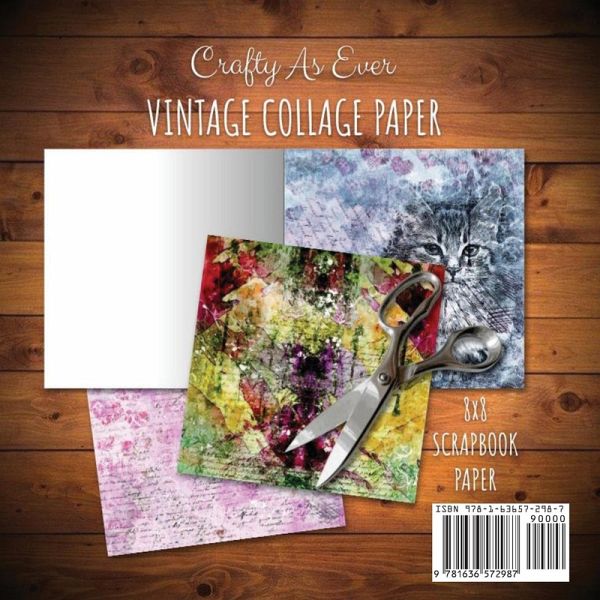 Decorative paper with a Vintage Collage design for your scrapbook crafts Specialty designer paper book to cut, tear, and collage 8x8 Inches, Double-sided sheets, non-perforated Our unique collection of colorful backgrounds and craft paper is perfect for all kinds of crafting, stationery, decoupage, origami, invitations, papercrafts, printmaking, bookbinding, handicraft, handmade paper beads and jewelry, as well as other crafty art projects.