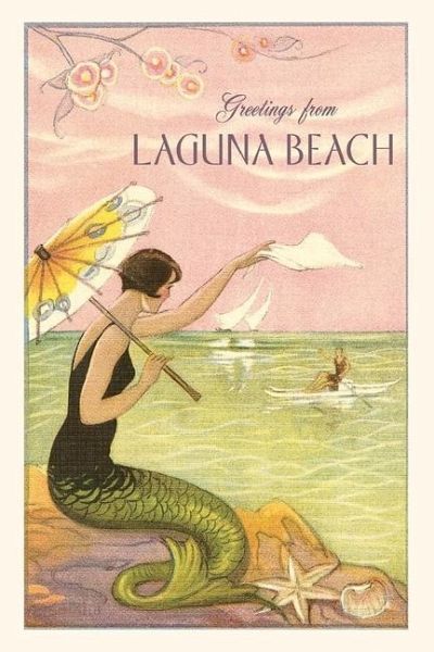 The Vintage Journal Greetings from Laguna Beach pocket journal features an illustration of mermaid on the short, with handkerchief in one hand and greeting, a man in the boath, umbrella is in her other hand. This journal has full color decorative vintage art on the cover, and is the perfect companion for your next trip, writing project, to-do list, or any occasion where a handy notebook is needed. Found Image Press Vintage Journals feature vintage art that celebrates your favorite places, hobbies and interests. The front cover design features a classic piece of art from the Found Image Press collection of over 60,000 pictures. - 4 x 6 inches - 100 lined opaque pages - Soft matte finish