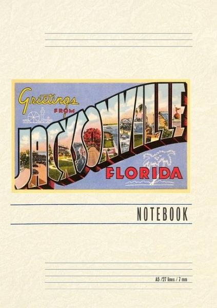 Introducing the Vintage Notebook: Greetings from Jacksonville, Florida, a delightful companion for all your writing endeavors. Featuring 150 lined pages, immerse yourself in the charm of a classic vintage travel postcard illustration adorning its cover. With its full-color decorative vintage art and versatile functionality, this notebook is an ideal companion for journaling, planning trips, tackling writing projects, organizing to-do lists, or simply capturing thoughts on any occasion. Found Image Press Vintage Journals take you on a nostalgic journey, featuring carefully curated vintage art that celebrates your favorite places, hobbies, and interests. The front cover showcases a captivating classic piece of art sourced from our vast collection of over 60,000 pictures, meticulously selected to transport you to a bygone era. Immerse yourself in the allure of the past and thoughtfully crafted to inspire and accompany your creative ventures. Details: A5 5.8 x 8.2 inches; 150 lined opaque pages; Soft matte finish; Soft matte finish