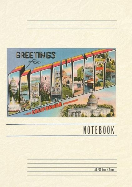 Introducing the Vintage Notebook: Greetings from Sacramento, California, a delightful companion for all your writing endeavors. Featuring 150 lined pages, immerse yourself in the charm of a classic vintage travel postcard illustration adorning its cover. With its full-color decorative vintage art and versatile functionality, this notebook is an ideal companion for journaling, planning trips, tackling writing projects, organizing to-do lists, or simply capturing thoughts on any occasion. Found Image Press Vintage Journals take you on a nostalgic journey, featuring carefully curated vintage art that celebrates your favorite places, hobbies, and interests. The front cover showcases a captivating classic piece of art sourced from our vast collection of over 60,000 pictures, meticulously selected to transport you to a bygone era. Immerse yourself in the allure of the past and thoughtfully crafted to inspire and accompany your creative ventures. Details: A5 5.8 x 8.2 inches; 150 lined opaque pages; Soft matte finish; Soft matte finish