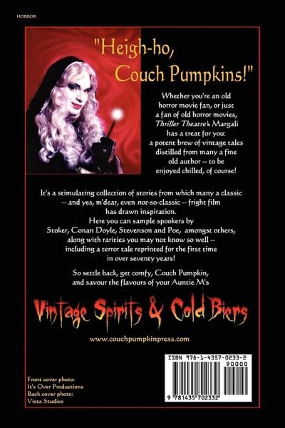 Whether you're an old horror movie fan, or just a fan of old horror movies, "Thriller Theatre" host Margali has a treat for you: a potent brew of vintage tales distilled from many a fine old author. It's a stimulating collection of stories from which many a classic -- and even not-so-classic -- fright film has drawn inspiration, including such rarities as a terror tale reprinted here for the first time in over seventy years!