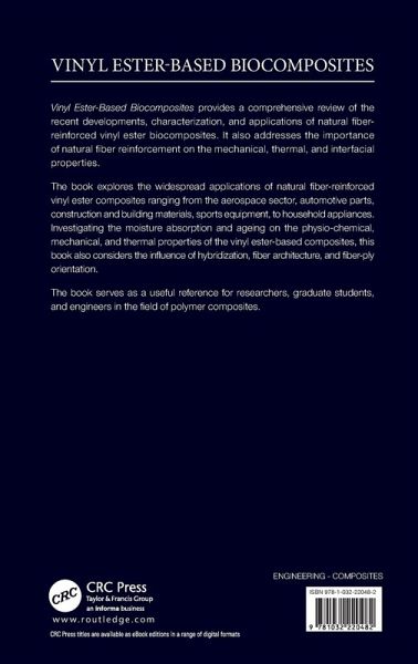 Vinyl Ester-Based Biocomposites provides a comprehensive review on the recent developments, characterization, and applications of natural fiber-reinforced vinyl ester biocomposites. It also addresses the importance of natural fiber reinforcement on the mechanical, thermal, and interfacial properties.