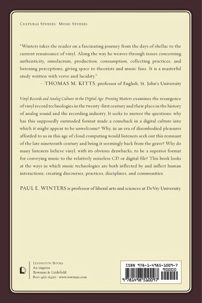 Vinyl Records and Analog Culture in the Digital Age examines music technologies from a popular culture studies perspective, taking into consideration the ways in which human beings bring these technologies into their lives and the discursive practices they create.