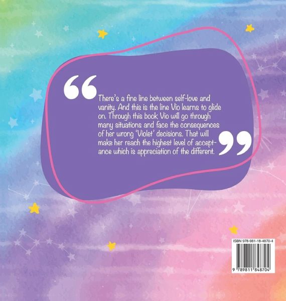 There's a fine line between self-love and vanity. And this is the line Vio learns to glide on. Through this book, Vio will go through many situations and face the consequences of her wrong 'Violet' decisions. That will make her reach the highest level of acceptance which is appreciation of the different.