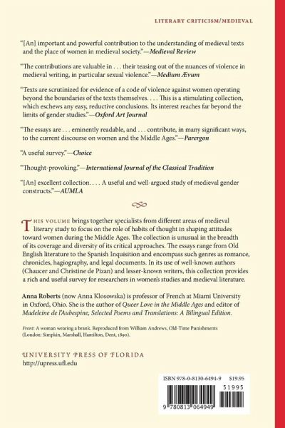 Brings together specialists from different areas of medieval literary study to focus on the role of habits of thought in shaping attitudes toward women during the Middle Ages. The essays range from Old English literature to the Spanish Inquisition and encompass such genres as romance, chronicles, hagiography, and legal documents.