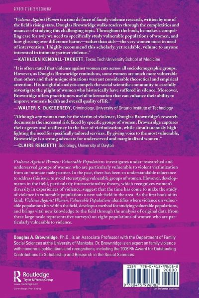 Violence Against Women: Vulnerable Populations investigates under-researched and underserved groups of women who are particularly vulnerable to violent victimization from an intimate male partner. In the past, there has been an understandable reluctance to address this issue to avoid stereotyping vulnerable groups of women. However, developments in the field, particularly intersectionality theory, which recognizes women's diversity in experiences of violence, suggest that the time has come to make the study of violence in vulnerable populations a new sub-field in the area. As the first book of its kind, Violence Against Women: Vulnerable Populations identifies where violence on vulnerable populations fits within the field, develops a method for studying vulnerable populations, and brings vital new knowledge to the field through the analysis of original data (from three large-scale representative surveys) on eight populations of women who are particularly vulnerable to violence.
