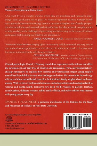 Violence and Mental Health in Every Day Life is an extremely well documented and very easy to read and understand publication on the behavior of children and youth. It is a must read for anyone interested in the well being of children. -- William Modzeleski, Associate Assistant Deputy Secretary, U.S. Department of Education, Office of Safe and Drug Free Schools Recommended. All readers; all levels. CHOICE Our youth live in a complex world in which they are introduced and exposed to many things?some good, some not so good. Dr. Flannery's approach to those everyday, as well as exceptional experiences involving 'violence' provides a tangible, user-friendly perspective that includes not only research and scientific data, but also personal, everyday events to help us relate to the challenges of preventing and intervening in the issues of violence and mental health among our children and adolescents... -- Carol Voorhees, L.C.S.W., Associated Behavior Consultants Our youth live in a complex world in which they are introduced and exposed to many things-some good, some not so good. Dr. Flannery's approach to those everyday, as well as exceptional experiences involving 'violence' provides a tangible, user-friendly perspective that includes not only research and scientific data, but also personal, everyday events to help us relate to the challenges of preventing and intervening in the issues of violence and mental health among our children and adolescents. -- Carol Voorhees, L.C.S.W., Associated Behavior Consultants