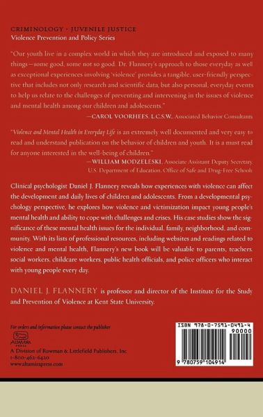Violence and Mental Health in Every Day Life is an extremely well documented and very easy to read and understand publication on the behavior of children and youth. It is a must read for anyone interested in the well being of children. -- William Modzeleski, Associate Assistant Deputy Secretary, U.S. Department of Education, Office of Safe and Drug Free Schools Recommended. All readers; all levels. CHOICE Our youth live in a complex world in which they are introduced and exposed to many things?some good, some not so good. Dr. Flannery's approach to those everyday, as well as exceptional experiences involving 'violence' provides a tangible, user-friendly perspective that includes not only research and scientific data, but also personal, everyday events to help us relate to the challenges of preventing and intervening in the issues of violence and mental health among our children and adolescents... -- Carol Voorhees, L.C.S.W., Associated Behavior Consultants Our youth live in a complex world in which they are introduced and exposed to many things-some good, some not so good. Dr. Flannery's approach to those everyday, as well as exceptional experiences involving 'violence' provides a tangible, user-friendly perspective that includes not only research and scientific data, but also personal, everyday events to help us relate to the challenges of preventing and intervening in the issues of violence and mental health among our children and adolescents. -- Carol Voorhees, L.C.S.W., Associated Behavior Consultants