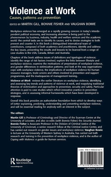 In this book a distinguished international team, composed of both academics and practitioners, identify and address the key issues of workplace violence. Overall this book provides a foundation on which to base ways of better explaining, predicting, understanding and preventing workplace violence.