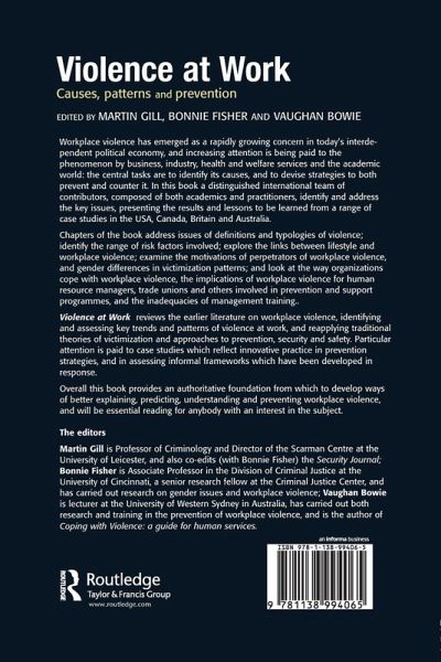 Workplace violence has emerged as a growing concern in today's interdependent political economy, and increasing attention is being paid to the phenomenon both by business and in the academic world to identifying its causes and to devise strategies to prevent it. In this book a distinguished international team, composed of both academics and practitioners, identify and address the key issues. It reviews the earlier literature on workplace violence, identifying and assessing key trends and patterns of violence at work, and reapplying traditional theories of victimisation and approaches to prevention, security and safety. Particular attention is paid to case studies which reflect innovative practice in prevention strategies, and in assessing informal frameworks which have been developed in response to this. Overall this book provides a foundation on which to base ways of better explaining, predicting, understanding and preventing workplace violence.