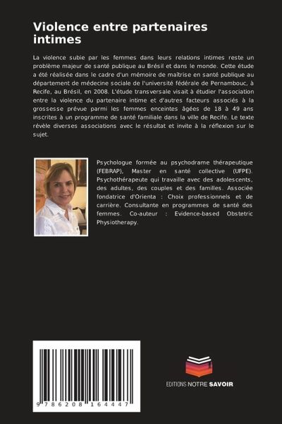 La violence subie par les femmes dans leurs relations intimes reste un problème majeur de santé publique au Brésil et dans le monde. Cette étude a été réalisée dans le cadre d'un mémoire de maîtrise en santé publique au département de médecine sociale de l'université fédérale de Pernambouc, à Recife, au Brésil, en 2008. L'étude transversale visait à étudier l'association entre la violence du partenaire intime et d'autres facteurs associés à la grossesse prévue parmi les femmes enceintes âgées de 18 à 49 ans inscrites à un programme de santé familiale dans la ville de Recife. Le texte révèle diverses associations avec le résultat et invite à la réflexion sur le sujet.