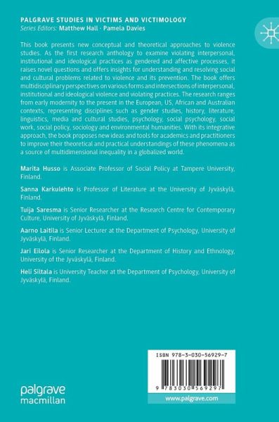 This book presents new conceptual and theoretical approaches to violence studies. As the first research anthology to examine violating interpersonal, institutional and ideological practices as both gendered and affective processes, it raises novel questions and offers insights for understanding and resolving social and cultural problems related to violence and its prevention. The book offers multidisciplinary perspectives on various forms and intersections of different types of violence. The research ranges from the early modern era to the present day in Europe, US, Africa and Australia, representing disciplines such as gender studies, history, literature, linguistics, media and cultural studies, psychology, social psychology, social work, social policy, sociology and environmental humanities. With its integrative approach, the book proposes new ideas and tools for academics and practitioners to improve their theoretical and practical understandings of these phenomena as a source ofmultidimensional inequality in a globalized world.