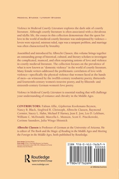 Introduction: Violence in the Shadows of the Court 1. Authority Violence and the Sacred at the Medieval Court 2. Brutality and Violence in Medieval French Romance and Its Consequences 3. Turnus in Veldeke's Eneide: The Effects of Violence 4. Violence and Pain at the Court: Comparing Violence in German Heroic and Courtly Epics 5. Violence Stylized 6. Violence at King Arthur's Court: Wolfram von Eschenbach's Perspectives 7. Violence in La Queste del Saint Graal and La Mort le roi Artu (Yale 229) 8. Violence and Communication in Shota Rustaveli's The Lord of the Panther-Skin 9. Constructive and Destructive Violence in Jean d'Arras' Roman de Mélusine 10. The Violent Poetics of Inversion or the Inversion of Violent Poetics: Meo dei Tolomei His Mother and the Italian Tradition of Comic Poetry 11. Violent Magic in Middle English Romance 12. Why Is Middle English Romance So Violent? The Literary and Aesthetic Purposes of Violence 13. Destruire et disperser: Violence and the Fragmented Body in Christine de Pizan's Prose Letters 14. Mimetic Crisis in the Medieval Mass: A Sequence for the Feast of St. Thomas of Canterbury and Its Liturgical Function ca. 1230 15. Violence in the Spanish Chivalric Romance Contributors Index