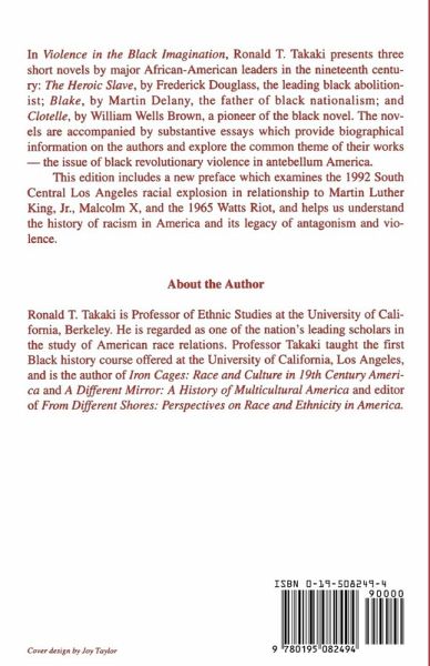 1992 has been an explosive year for racial relations in the United States--from the reactions to the Rodney King verdict to debate about Malcolm X and the film portrayal of his role in American history. What relations do the recent events in Los Angeles have to the Watts Riots in 1965? Violence in the Black Imagination shows that these recent events force us to understand the history of racism in America and its legacy of antagonism and violence. Ronald T. Takaki presents three short novels of major African-American leaders in the nineteenth century: Frederick Douglass, the leading black abolitionist; Martin Delany, the father of black nationalism; and William Wells Brown, a pioneer of the black novel. The novels are accompanied by substantive essays which provide both biographical information on the author and explore the common theme of their work--the issue of black revolutionary violence in antebellum America. The work includes a new preface which examines the 1992 South Central Los Angeles racial explosion in relationship to Martin Luther King, Jr., Malcolm X, and the 1965 Watts Riot.
