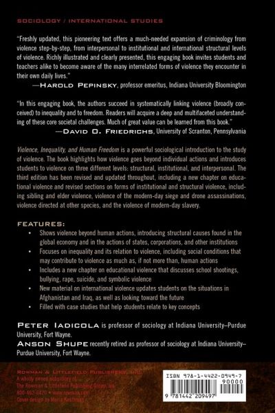 Violence, Inequality, and Human Freedom is a sociological introduction to the study of violence that looks at violence on three different levels-structural, institutional, and interpersonal. The third edition is updated throughout, including a new chapter on educational violence and revised sections on economic and international violence.