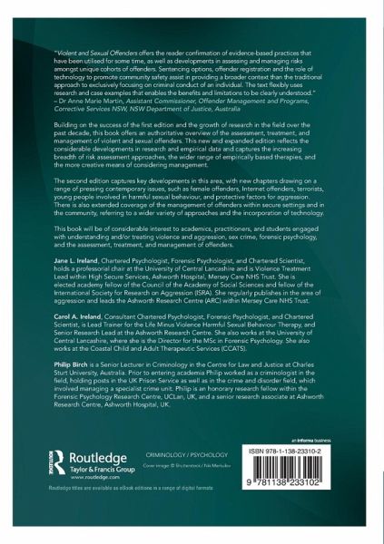 The second edition captures key developments in this area, with new chapters drawing on a range of pressing contemporary issues, such as female offenders, Internet offenders, terrorists, young people involved in harmful sexual behaviour, and protective factors for aggression. There is also extended coverage of the management of offenders within secure settings and in the community, referring to a wider variety of approaches and the incorporation of technology.