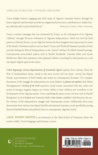 Violent Beginnings: Literary Representations of Postcolonial Algeria explores how violence, during the Algerian War of Independence (1954–1962) to the more recent civil war (1991–2002), has shaped literary representations of both family and nation in contemporary literature.