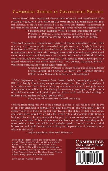 This book is a pioneering study of when and why Hindu Nationalists have engaged in discrimination and violence against minorities in contemporary India. Amrita Basu asks why the incidence and severity of violence differs significantly across Indian states, within states, and through time. Contrary to many predictions, the Hindu nationalist Bharatiya Janata Party (BJP) has neither consistently engaged in anti-minority violence nor been compelled by the centrifugal pressures of democracy to become a centrist party. Rather, the national BJP has alternated between moderation and militancy. Hindu nationalist violence has been conjunctural, determined by relations among its own party, social movement organization, and state governments, and on the character of opposition states, parties and movements. This study accords particular importance to the role of social movements in precipitating anti-minority violence. It calls for a broader understanding of social movements and a greater appreciation of their relationship to political parties.