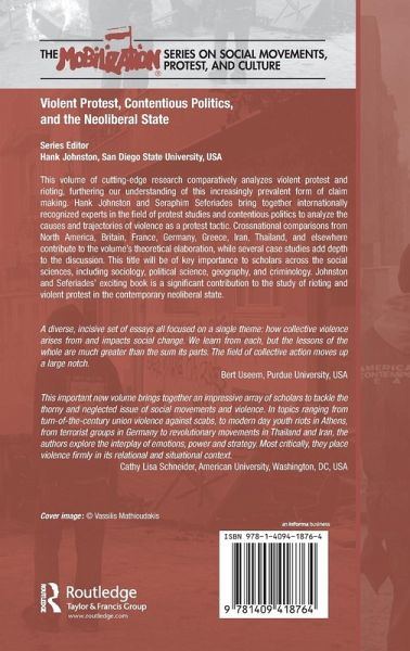 This volume of cutting-edge research brings together internationally recognized experts in the field of protest studies and contentious politics to analyse the causes and trajectories of violence as a protest tactic. Cross-national comparisons from North America, Britain, France, Germany, Greece, Iran, Thailand, and elsewhere contribute to the volume's theoretical elaboration, while several case studies add depth to the discussion. This title is of key importance to scholars across the social sciences, including sociology, political science, geography and criminology and is a significant contribution to the study of rioting and violent protest in the contemporary neoliberal states.
