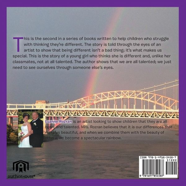 This is the second in a series of books written to help children who struggle with thinking they're different. The story is told through the eyes of an artist to show that being different isn't a bad thing; it's what makes us special. This is the story of a young girl who thinks she is different and, unlike her classmates, not at all talented. The author shows that we are all talented; we just need to see ourselves through someone else's eyes.