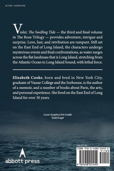 Violet, The Swelling Tide - the third and final volume in The Rose Trilogy - provides adventure, intrigue and surprise. Love, lust, and retribution are rampant. Still set on the East End of Long Island, the characters undergo mysterious events and final confrontations, as water surges across the flat landmass that is Long Island, stretching from the Atlantic Ocean to Long Island Sound, with lethal force.