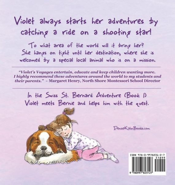 Violet always starts her adventures by catching a ride on a shooting star! She hangs on tight until she arrives in Switzerland where she meets Bernie, the Swiss St. Bernard. He is on a mission and Violet joins him on his quest to rescue a skier.