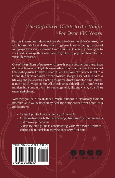 For an instrument whose origins date back to the 16th Century, the stirring sound of the violin plays a huge part in music being composed and played this very moment. From classical to country, from jazz to rock and even rap, the violin has always been a popular choice for the versatile virtuoso. One of the millions of people who have drawn a bow across the strings of the violin was an English polymath, writer, scientist, and all-around fascinating man Edward Heron-Allen. His love of the violin led to a friendship with renowned violin maker Georges Chanot III, and to a lifelong obsession with crafting the perfect instrument. A true Renaissance man, Edward Heron-Allen published this tribute to his favorite musical instrument over 130 years ago and, like the violin, it's still an unrivaled classic. Whether you're a fresh-faced music student, a classically trained maestro, or if you simply enjoy fiddling along on the front porch, this guide offers: • An in-depth look at the history of the violin • A fascinating, and often surprising, discussion of the materials that make up the violin • A step-by-step guide to constructing your own violin - from selecting the materials to playing that very first note