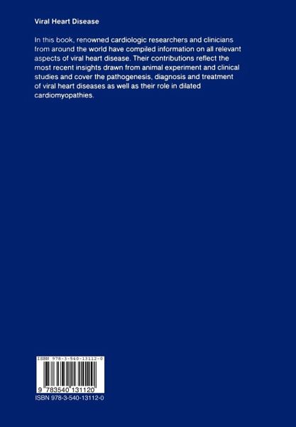 I: Histopathology and Virology.- Histomorphological Relations Between Myocarditis and Dilated Cardiomyopathy.- Histopathological Aspects of Myocarditis with Special Reference to Mumps, Cytomegalovirus Infection and the Role of Endomyocardial Biopsy.- Relations Between Viral Infection of the Myocardium and the Synthesis of Collagen Types I and III.- Electron Microscopic Demonstration of Viruses in the Myocardium, with Particular Reference to Reovirus.- Animal Models of Congestive Heart Failure and Congestive (Dilated) Cardiomyopathy Due to Viral Myocarditis in Mice.- Effect of Interferon on the Replication of Coxsackie B3 Virus in Cultured Human Fetal Heart Cells.- The Role of Virus-, and Immune-Mediated Cardiocyte Injury in Coxsackievirus B3-Induced Myocarditis.- Characterization of the Inflammatory Infiltrate in Human Myocarditis - An Endomyocardial Biopsy Study.- The Role of Eosinophils in Myocarditis.- II: Clinical Virology and Cellular Immunology.- Coxsackie B Virus-Specific IgM Responses in Patients with Cardiac and Other Diseases.- Viral Heart Disease - A Precursor of Congestive Cardiomyopathy.- Virus Investigations in Heart Muscle Disease.- Experience with Enzyme-Linked Immunosorbent Assay for the Detection of Antibodies of the IgM Class Against Coxsackie B Viruses.- Cardiocytolysis by Sera of Patients Suffering from Acute Perimyocarditis.- Autoantibodies Against the Adenine Nucleotide Translocator in Myocarditis and Dilated Cardiomyopathy.- Dilated Cardiomyopathy: A Consequence of Defective Suppressor Cell Function?.- The Role of Human Leukocyte Antigen Genes and Low Suppressor Cell Activity in the Pathogenesis of Myocarditis and Dilated Cardiomyopathy.- III: Haemodynamics and Therapeutic Aspects.- Haemodynamic Findings in Biopsy Proven Acute Myocarditis.-Endomyocardial Biopsy: Technique and Evaluation of a New Disposable Forceps and Catheter Sheath System.- Viral Myocarditis: Symptomatology, Clinical Diagnostics and Haemodynamics.- Potential Value of Colour-Coded Two-Dimensional Echocardiograms in the Study of Inflammatory Left Ventricular Disease.- Assessment of Left Ventricular Reserve Using Radionuclide Ventriculography in Patients with Prior Myocarditis.- Endomyocardial Biopsy Diagnosis of Myocarditis and Changes Following Immunsuppressive Treatment.- Do Tetrapeptides Play a Role in Viral Heart Disease?.- Relations Between Virus Infections and Coronary Artery Disease.- Therapeutic Aspects in Myocardial Diseases.- Summary of Workshop.