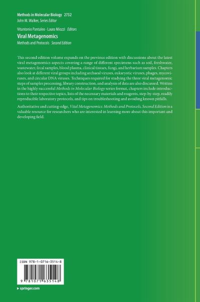 This second edition volume expands on the previous edition with discussions about the latest viral metagenomics aspects covering a range of different specimens such as soil, freshwater, wastewater, fecal samples, blood plasma, clinical tissues, fungi, and herbarium samples. Chapters also look at different viral groups including archaeal viruses, eukaryotic viruses, phages, mycoviruses, and circular DNA viruses. Techniques required for studying the three viral metagenomic steps of samples processing, library construction, and analysis of data are also discussed. Written in the highly successful Methods in Molecular Biology series format, chapters include introductions to their respective topics, lists of the necessary materials and reagents, step-by-step, readily reproducible laboratory protocols, and tips on troubleshooting and avoiding known pitfalls.